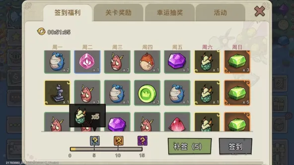 全体玩家规则统一。每周六签到必得一枚A级蛋,品种为绿龙或双头龙。累计登录满5、10、15天,分别奖励5、10、25枚A级蛋。第十六天起,累计奖励自动发送至邮箱,不占用背包空间。建议无特殊需求时坚持签到至十六天。邮件保存期已延长至三十天。期间若遇合成活动,可直接从邮件提取参与,日常无需手动领取。